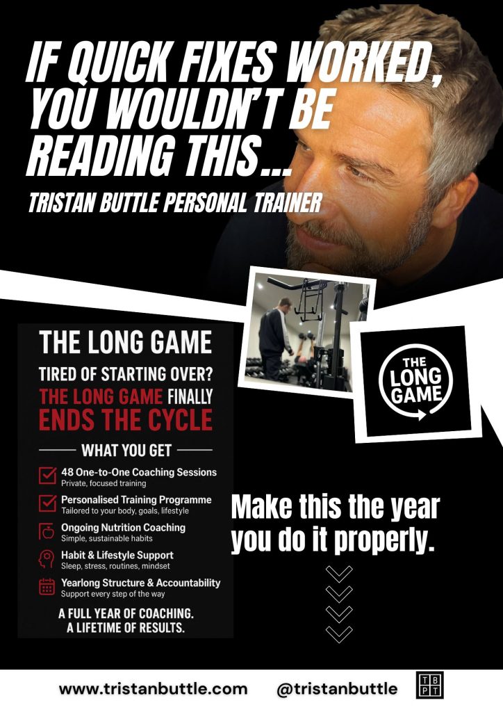 The Long Game is a 12-month, one-to-one coaching programme for busy adults who are tired of quick fixes, constant restarts, and never feeling in control of their health.